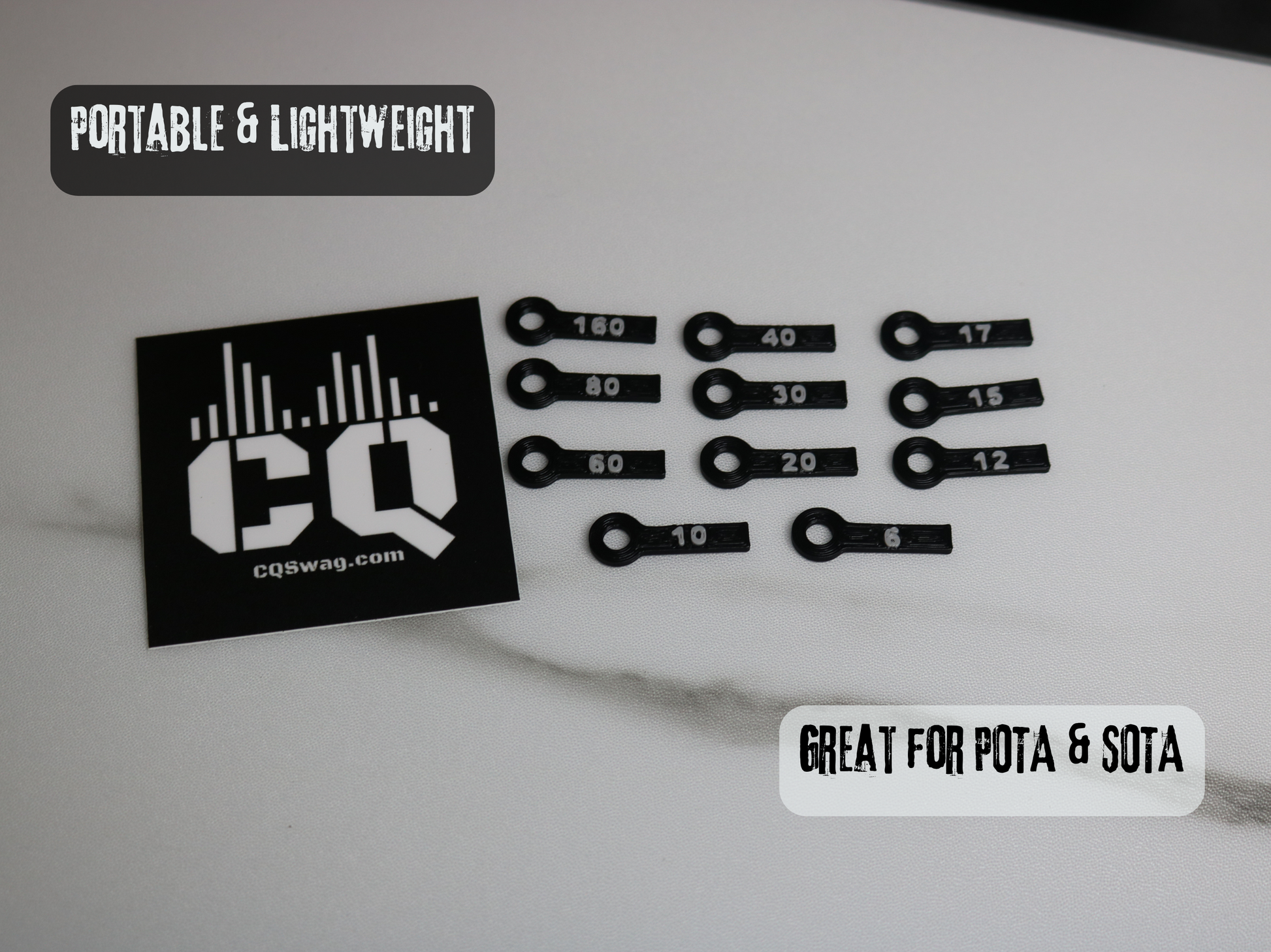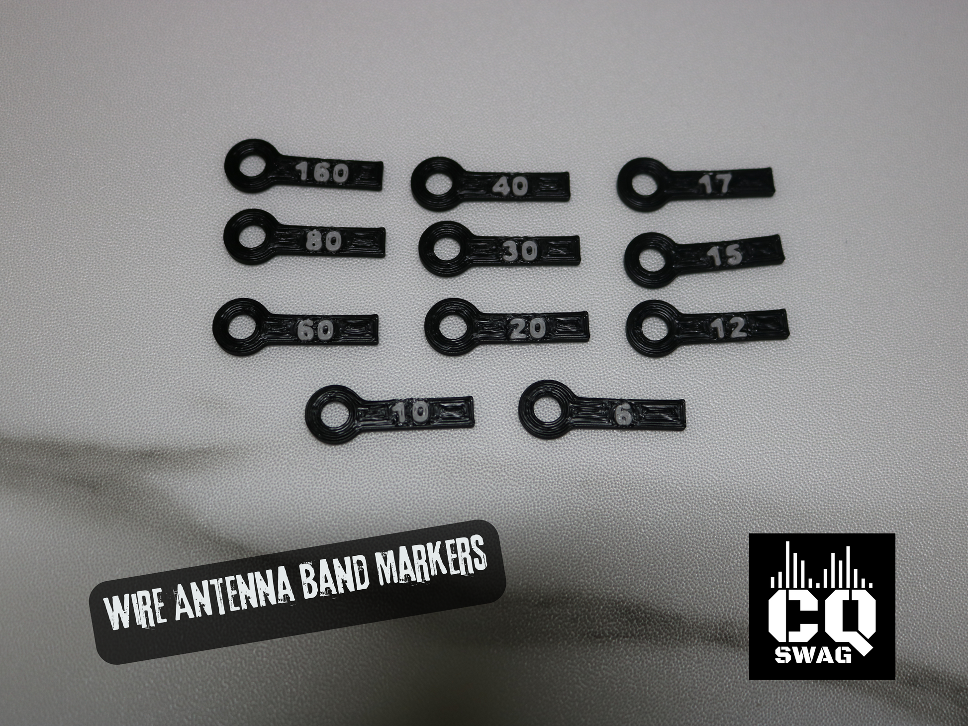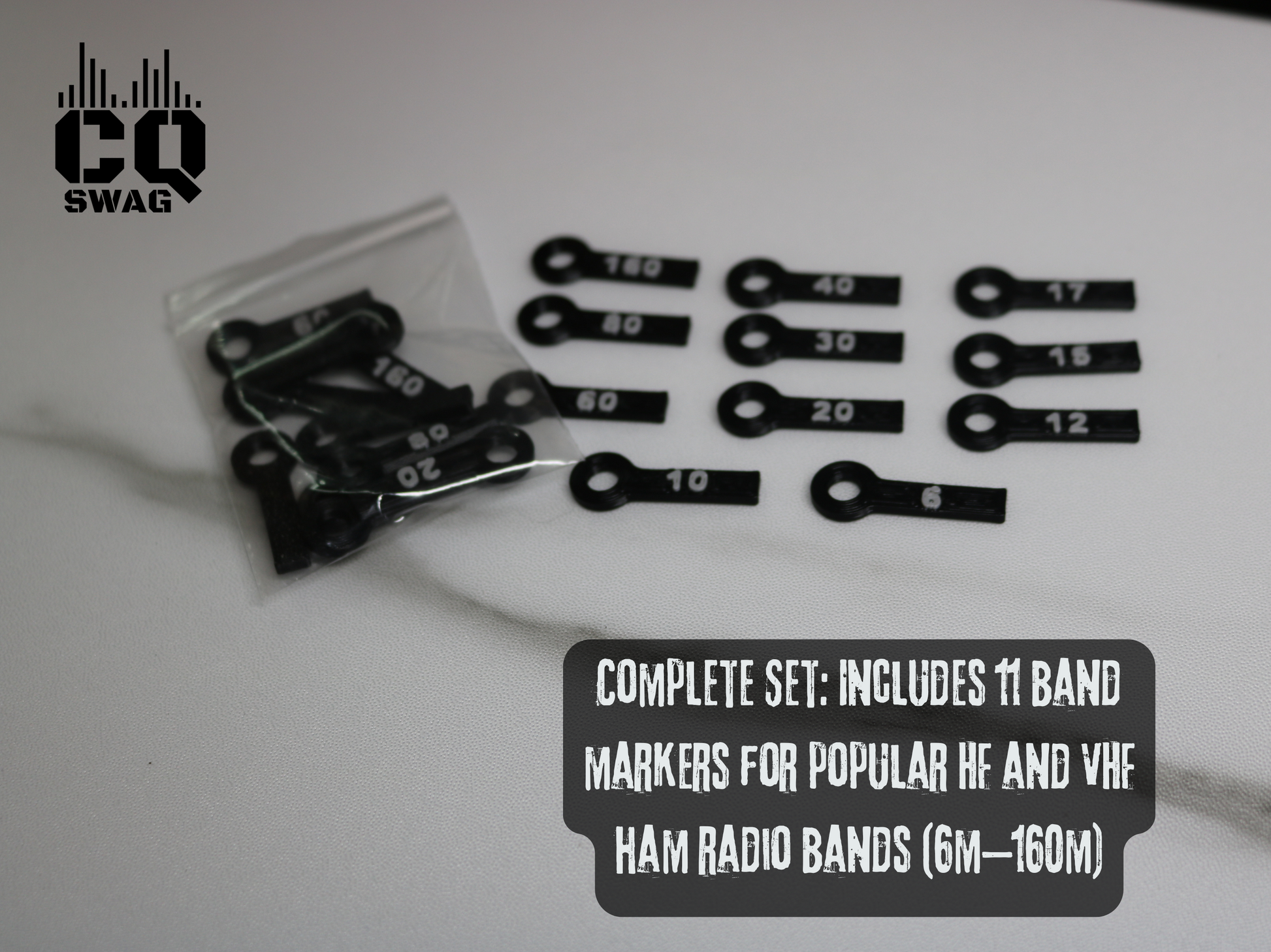 I designed this set of wire antenna band markers to make life easier for hams who want quick, reliable band identification on the go. The set includes 11 markers covering all major HF and VHF bands: 6m, 10m, 12m, 15m, 17m, 20m, 30m, 40m, 60m, 80m, and 160m.